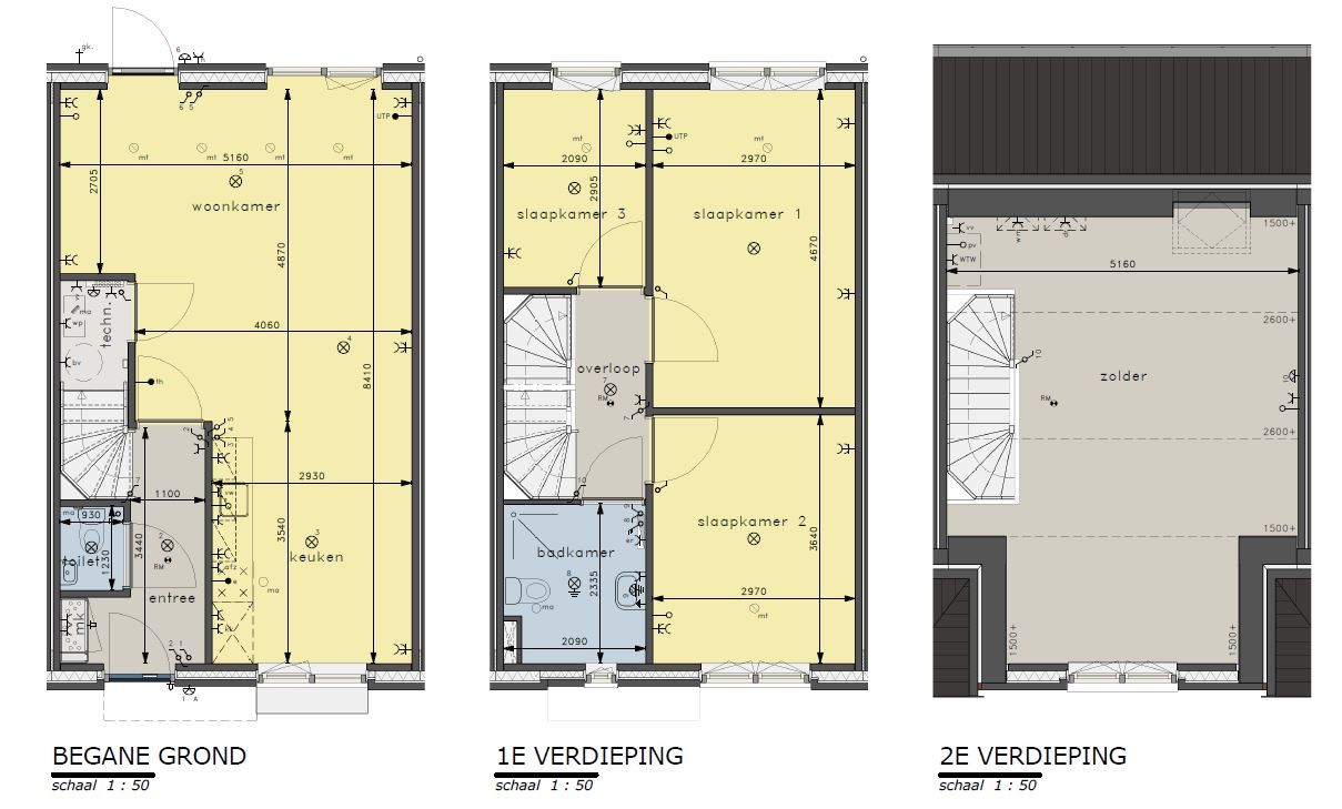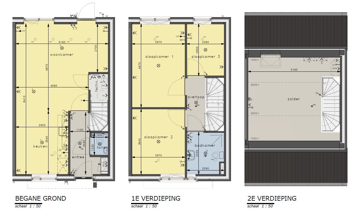 De eengezinswoningen beschikken over een woonkamer met open keuken, badkamer, drie slaapkamers, een open zolder en een technische ruimte. De tuin is voorzien van een berging en is via de poort achterom te bereiken.