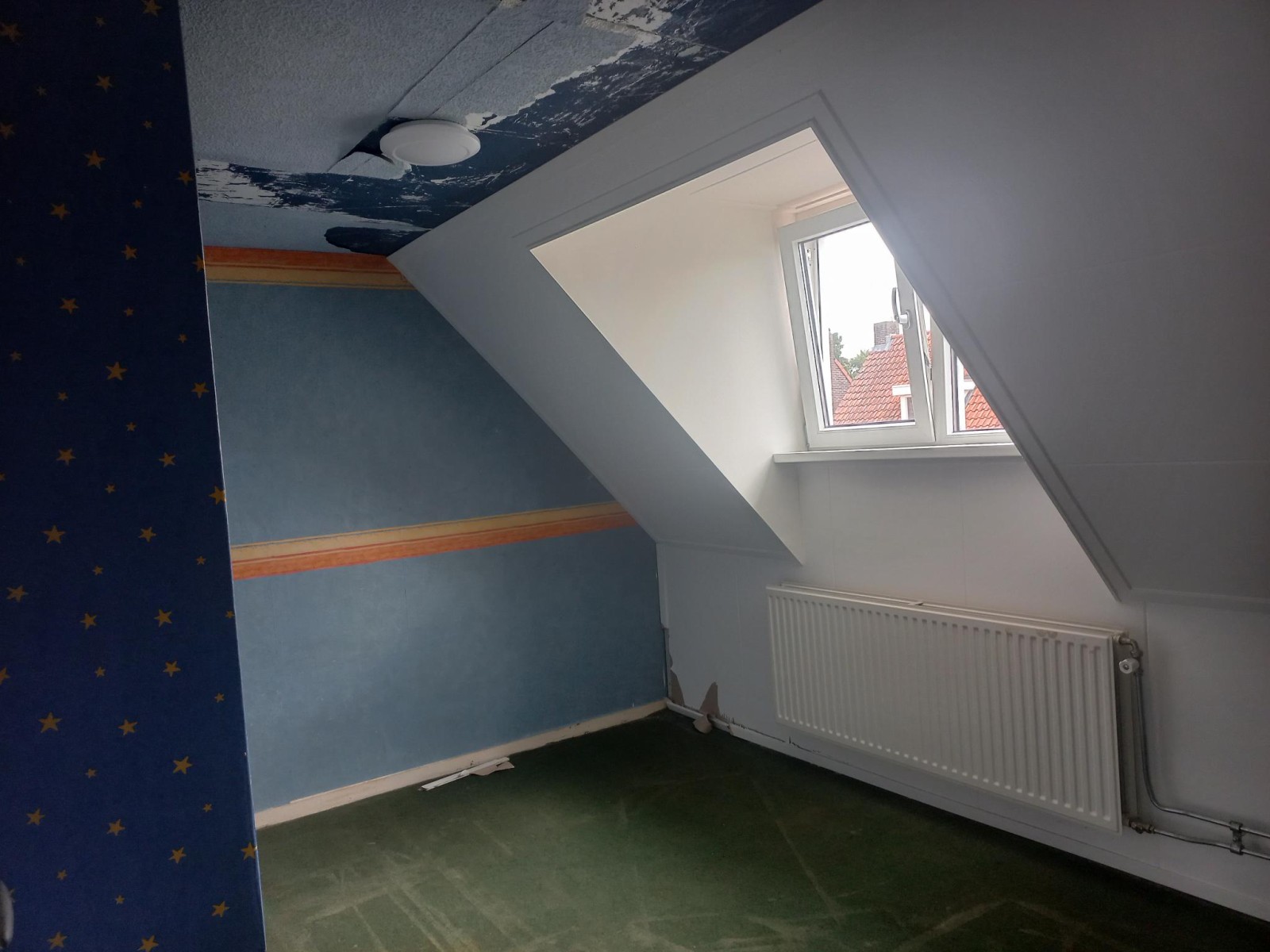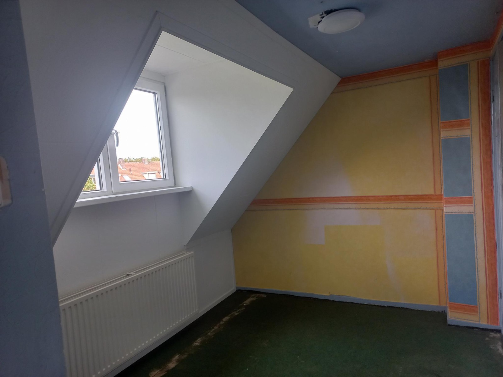 Ruime slaapkamer met een oppervlakte van circa 9 m² gelegen aan de achterzijde van de woning. Deze slaapkamer is voorzien van een dakkapel en inbouwkast.