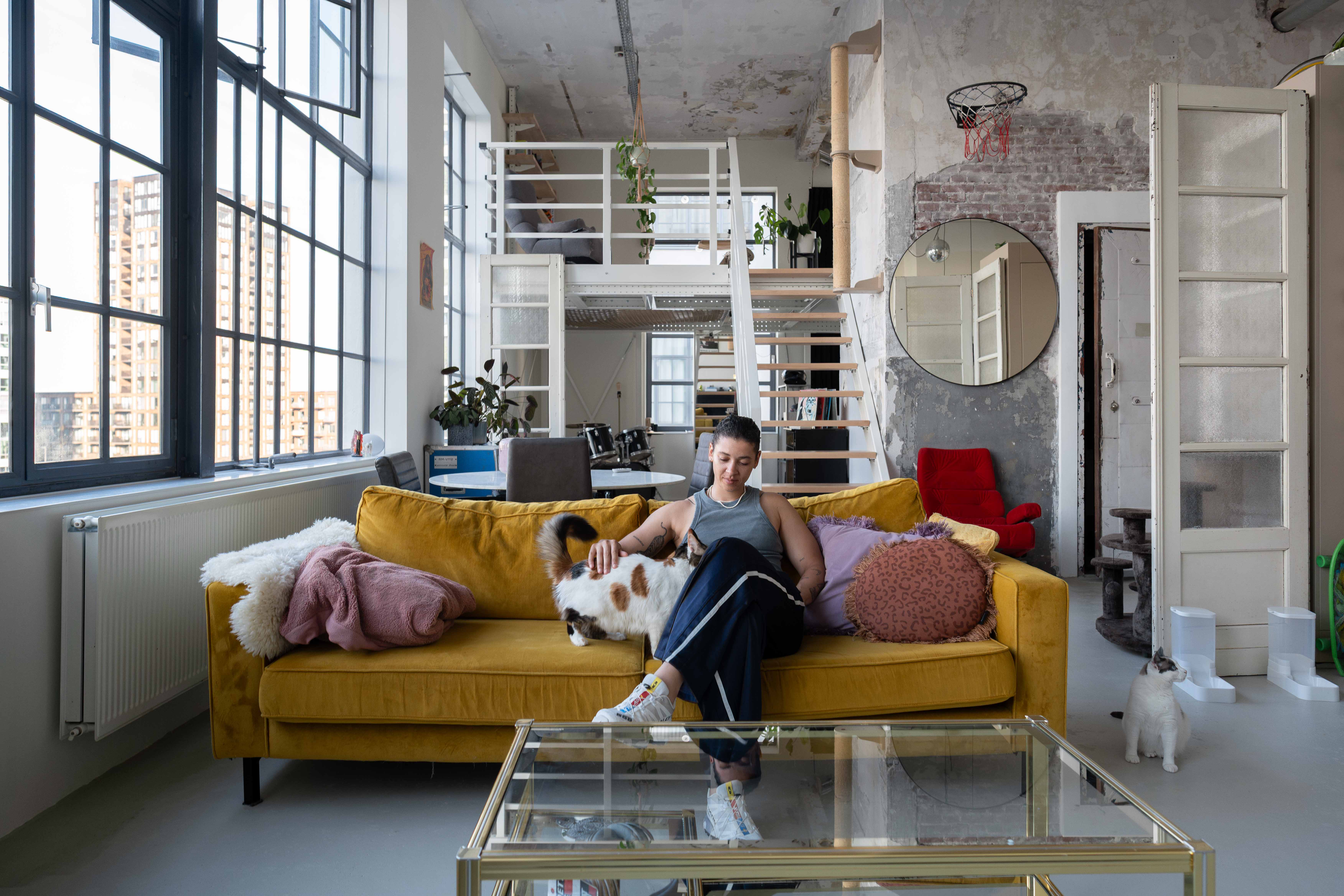 Een loungenet in de woonkamer, twee gezellige poezen en volop licht – welkom in het fijne thuis van Nina! Ze woont nu een jaar in haar woning, gekocht met behulp van Slimmer Kopen®.